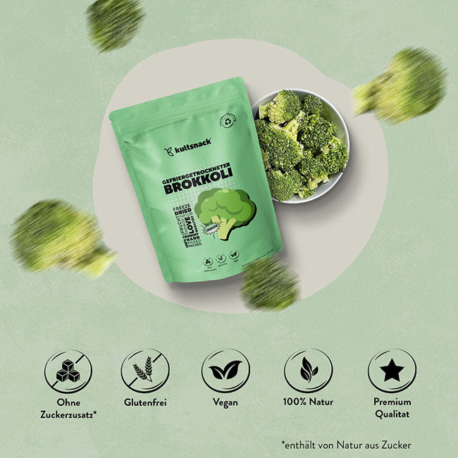 ✓ Aromatisch lecker, ganz besonderer Gemüse Snack. Gefriergetrockneter Brokkoli.