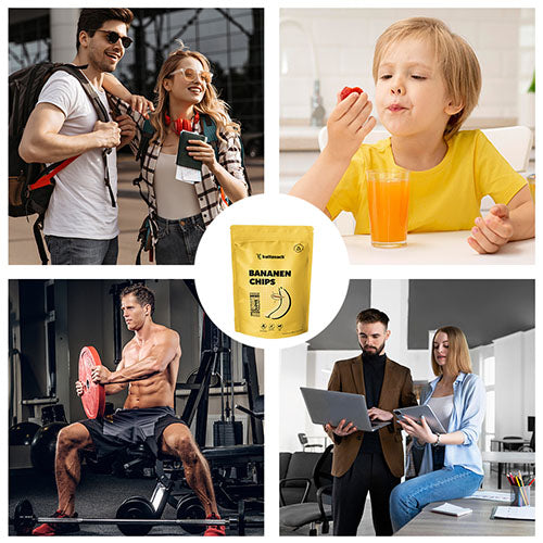 Knusprig, goldgelb und einfach lecker – unsere Bananenchips von Kultsnack bringen dir den Geschmack reifer Tropenbananen direkt nach Hause. Für ihre Herstellung werden nur sorgfältig ausgewählte Bananen verwendet, die in der Sonne ihr volles Aroma entfalten dürfen. Anschließend werden sie schonend getrocknet und leicht knusprig gebacken – ganz ohne künstliche Zusätze. Der Geschmack ist intensiv fruchtig, mit einer feinen, natürlichen Süße, die sofort an Sommer und gute Laune erinnert. Ob als Snack zwischendurch, zum Knabbern auf der Couch oder als Topping für dein Müsli und deine Smoothie-Bowl – unsere Bananenchips sind immer eine gute Wahl. Sie sind reich an Kalium, Ballaststoffen und wertvollen Vitaminen – ein Snack, der nicht nur gut schmeckt, sondern dir auch guttut. 100 % natürlich, ehrlich und unverfälscht – genau so, wie ein Snack sein sollte.