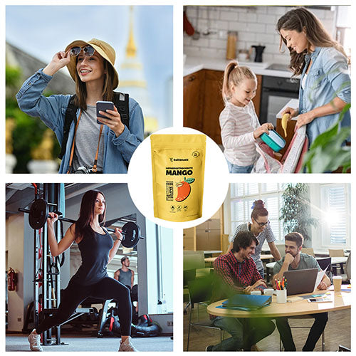 Wenn du Mango liebst, wirst du unsere gefriergetrocknete Mango von Kultsnack einfach genießen. Besonders große, aromatische Stücke bringen dir das volle Fruchtaroma direkt nach Hause – exotisch süß, ganz natürlich im Geschmack und ohne Zusätze. Die Stücke sind fluffig leicht, knusprig und sorgen für echten Knabberspaß mit Crunch. Ideal, wenn du dich bewusst, abwechslungsreich und modern ernähren möchtest – schnell, unkompliziert und voller Genuss. Und das Beste: unsere praktischen 20 g To-Go-Packungen sind die perfekte Lösung für unterwegs. Ein gesunder Snack, der dich mit jedem Bissen an Sonne, Energie und Lebensfreude erinnert.