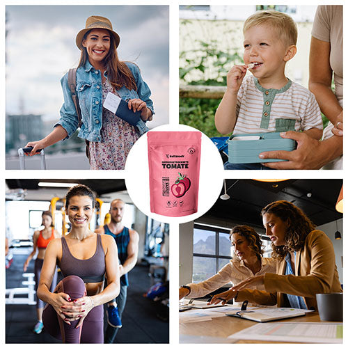 Du liebst das Aroma sonnengereifter Tomaten? Dann wirst du unsere gefriergetrockneten Tomaten von Kultsnack einfach lieben! Sie schmecken so intensiv, als kämen sie direkt frisch vom Strauch – nur eben knackig, luftig und voller natürlicher Vitamine. Ob als kleiner Snack zwischendurch, als Topping auf deinem Salat, zu Pasta oder in cremigen Dips – sie bringen in jedes Gericht das gewisse Etwas. 100 % Natur, ohne Zusätze, Zucker oder Gentechnik – einfach pure Tomaten Power, die dich jeden Tag aufs Neue begeistert.